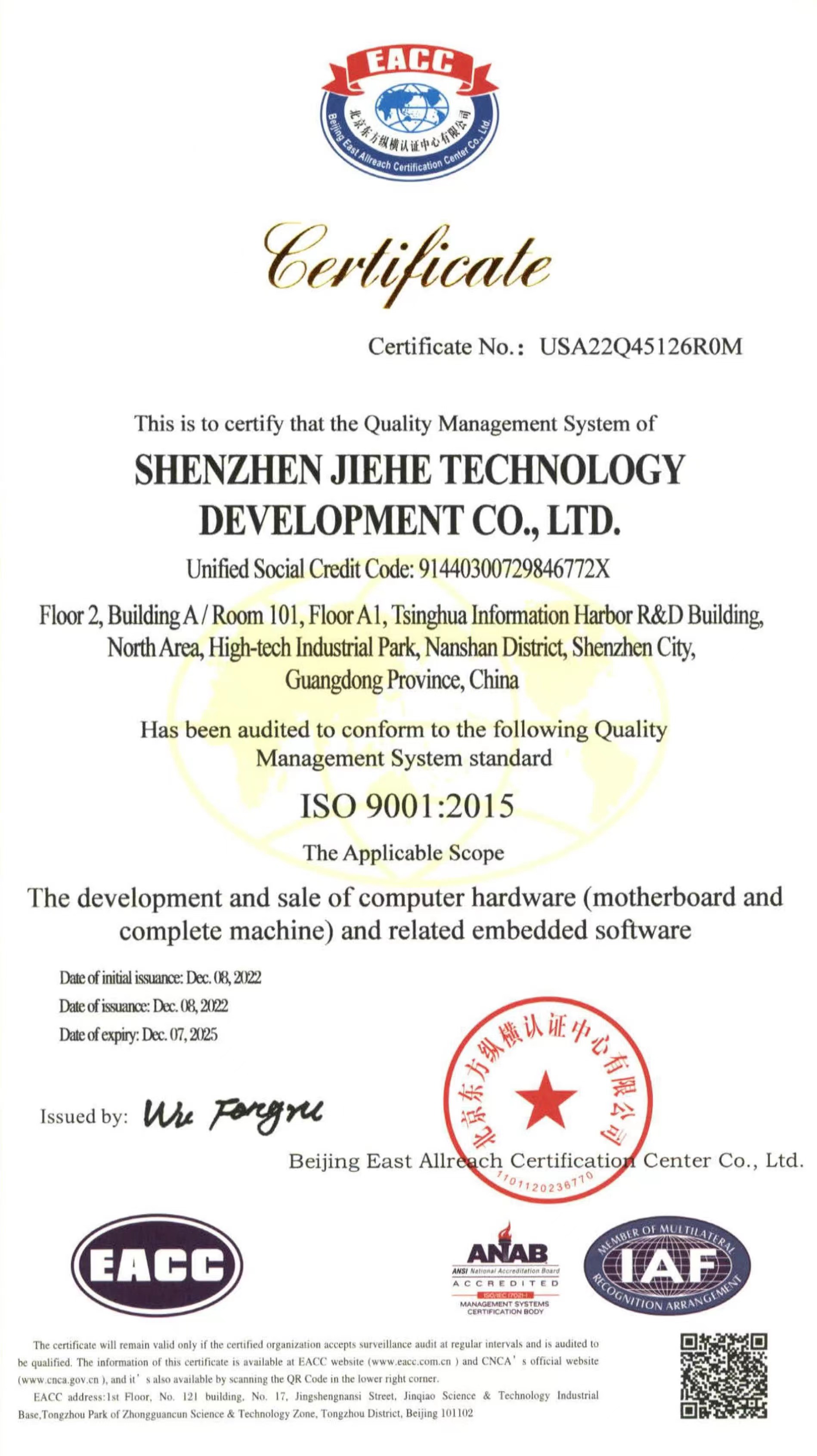ISO9001质量管理体系认证作为国际标准化组织的管理性质标杆,它的地位可见一斑,其认可彰显了球王会·(体育)科技的体系管理以及产品的质量。球王会·(体育)科技在过去几年不断提升设备标准化生产的能力,减少人为质量问题,把ISO9001质量管理体系理念贯穿于产品研发—生产全流程。