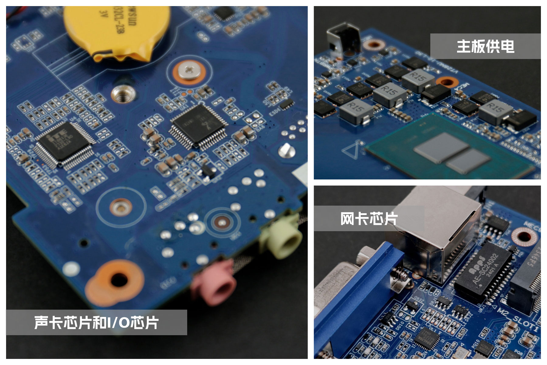 球王会·(体育)桌面云终端Y-BOX S2主板采用的是3+1相供电,在主板两侧的接口附近,都分布了相关的芯片。在千兆网口附近有1个网卡芯片RTL 8111H,在主板背面的音频接口附近可以看到一个经典的“小螃蟹”ALC897 声卡芯片,声卡芯片附近有一个I/0 芯片HE8613E-LX。