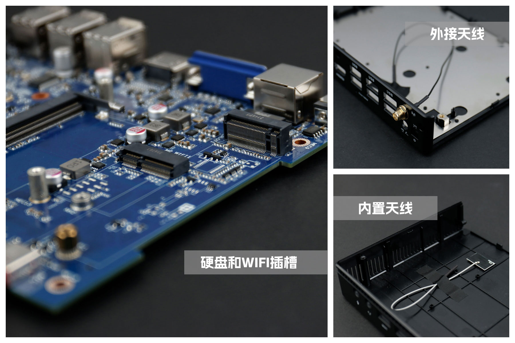 球王会·(体育)桌面云终端Y-BOX S2主板上配备了 1个 M.2 固态硬盘位,接口规格为 PCIe3.0 标准,匹配标准的 2280 规格硬盘。一侧还有一个M.2接口,匹配2230长度的WIFI/BT模块插槽,WiFi模块可以连接的是外接天线,增强信号,同时也可以内接天线,灵活应用,支持Wi-Fi 5/6/6E网络。