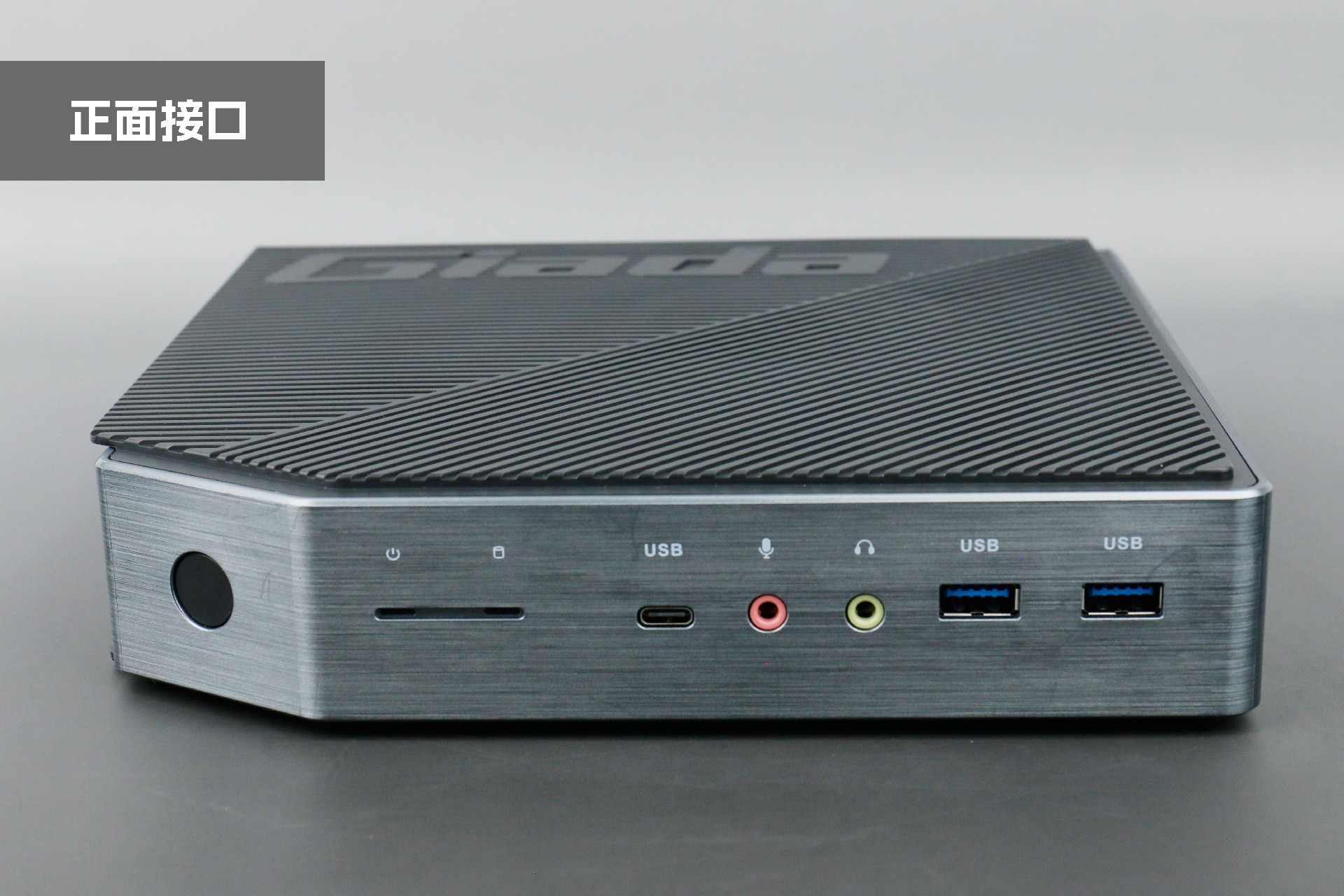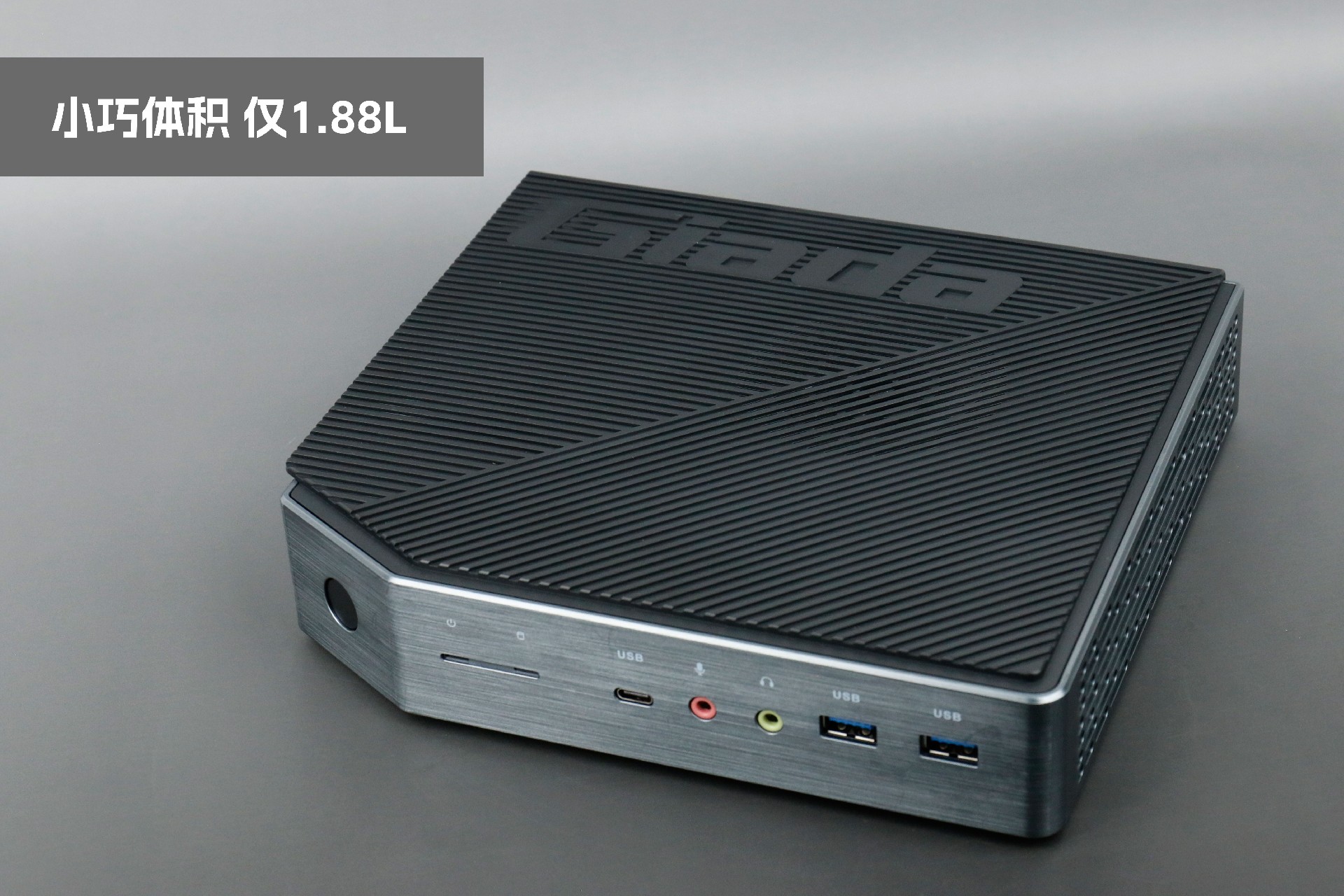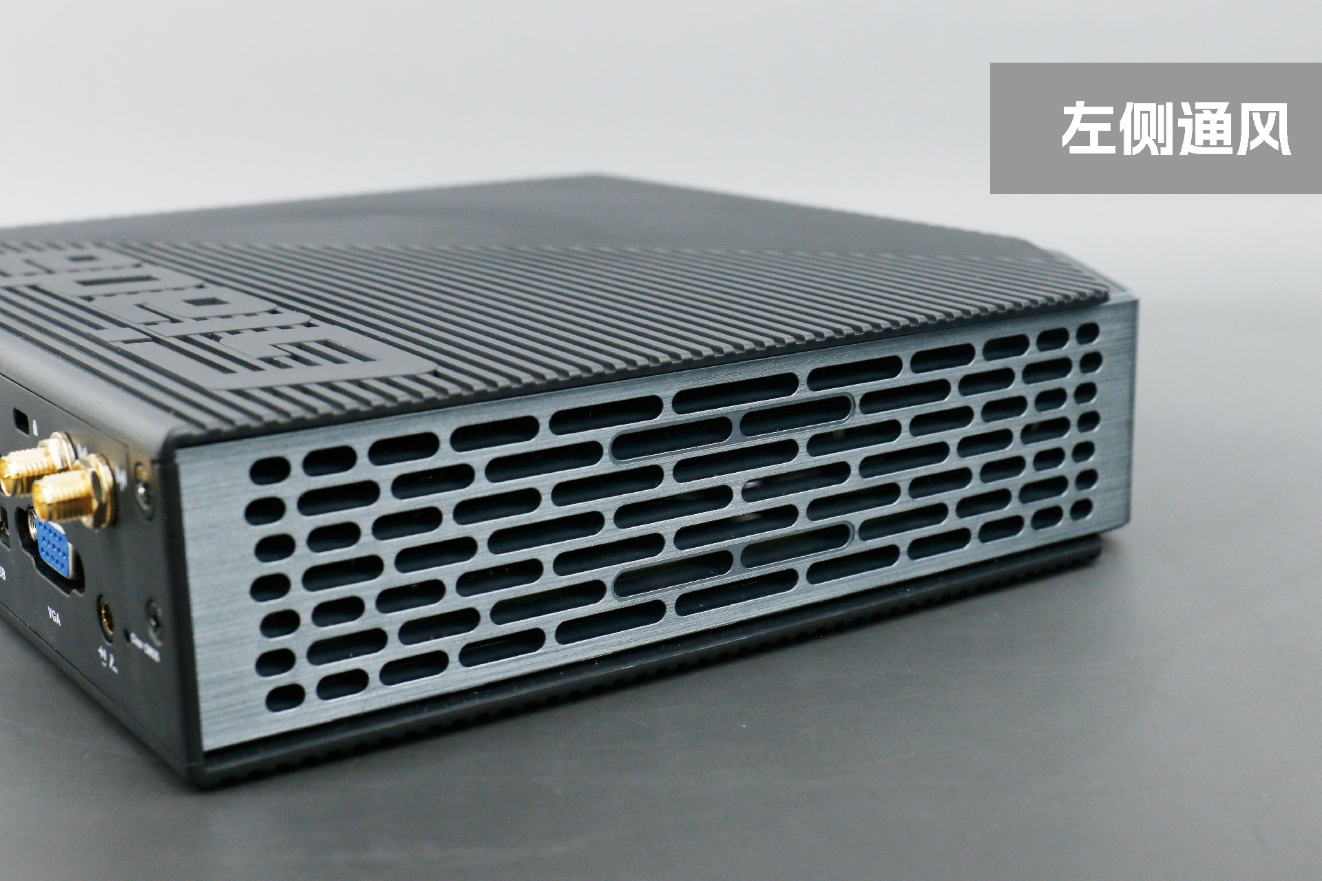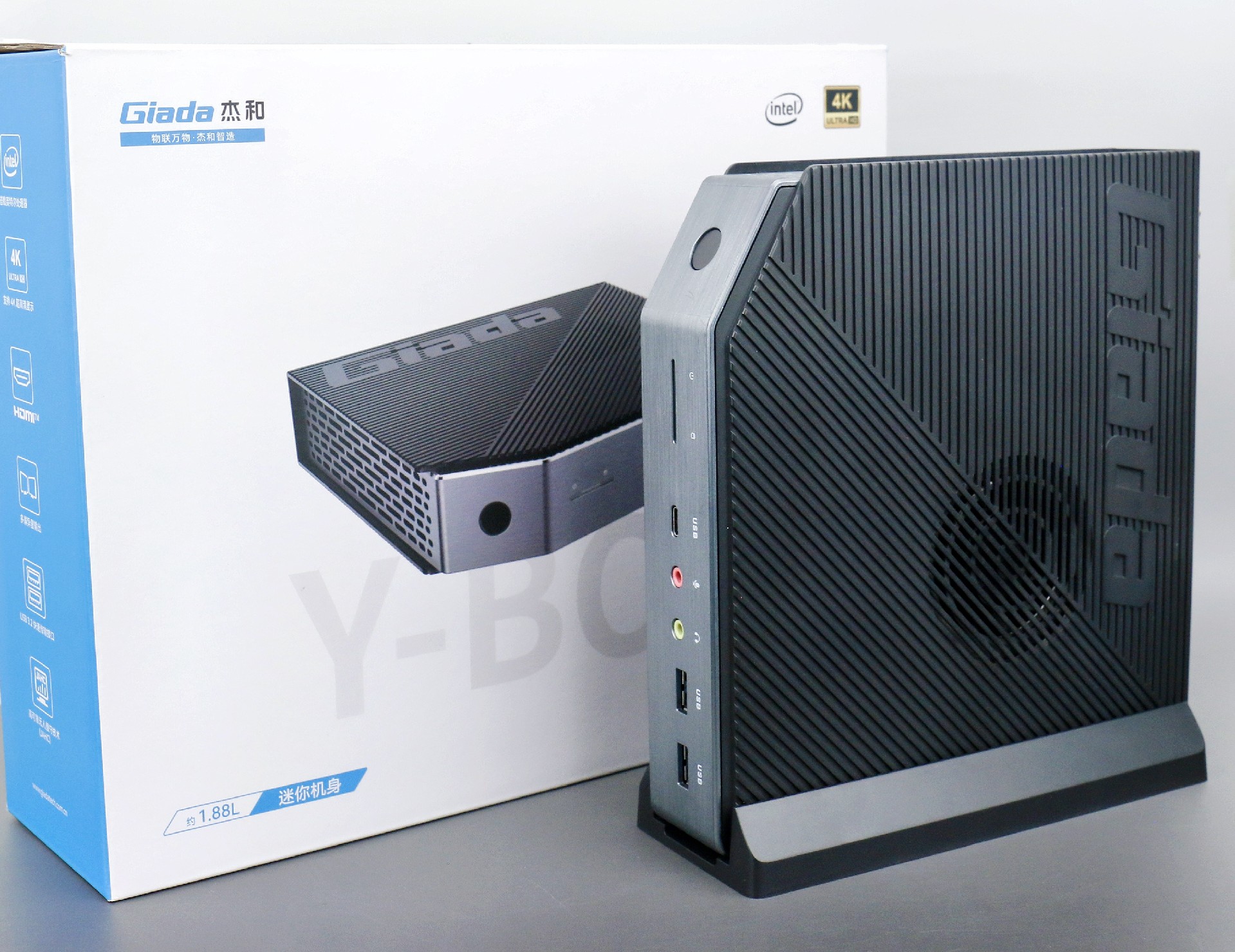 打开球王会·(体育)桌面云终端Y-BOX P3,你会发现它的结构并不是常见的四方体设计,而是在转角处好似被切割开一个角,切割出来的面积为指纹识别开机键。它的外观为优雅的银灰配色,机身正面厚重感十足,顶部依然沿用黑色哑光栅格并延伸至整机背面,磨砂塑胶材质壳,印刻球王会·(体育)Giada品牌名;其他三面则为银灰色,两侧是蜂窝式通风口设计。