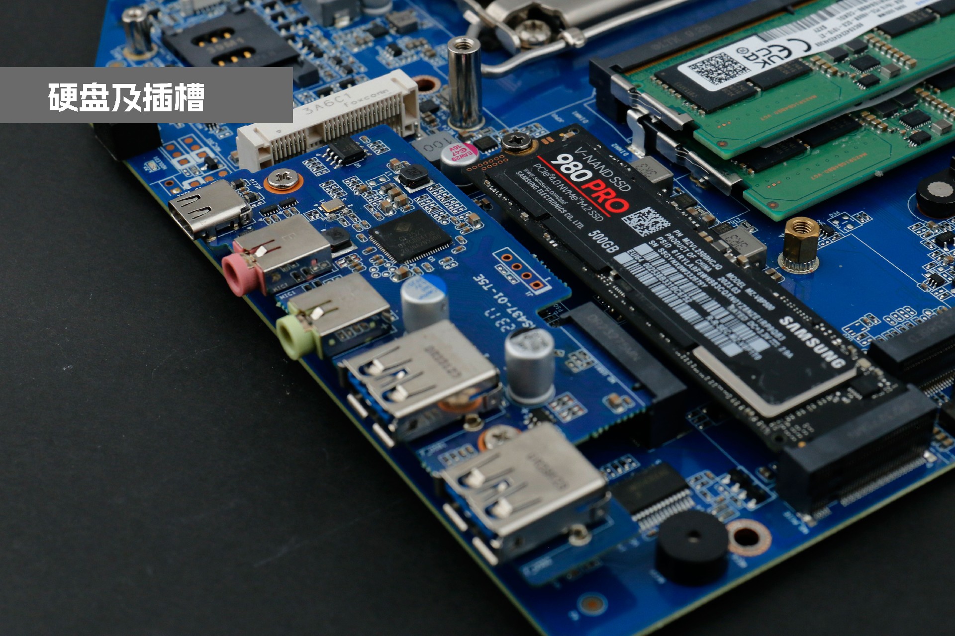 球王会·(体育)桌面云终端Y-BOX P3主板中部是内存插槽,采用双通道笔记本内存槽设计,最大支持容量可达64GB,最高支持DDR5-5600MHz频率,比 DDR4 至高标准数据速度 3200MT/S多传输 1.75 倍,横插的形式可以减少主板的占用体积,使整体机身更紧凑,内存顶部的风扇起到高效散热的作用。