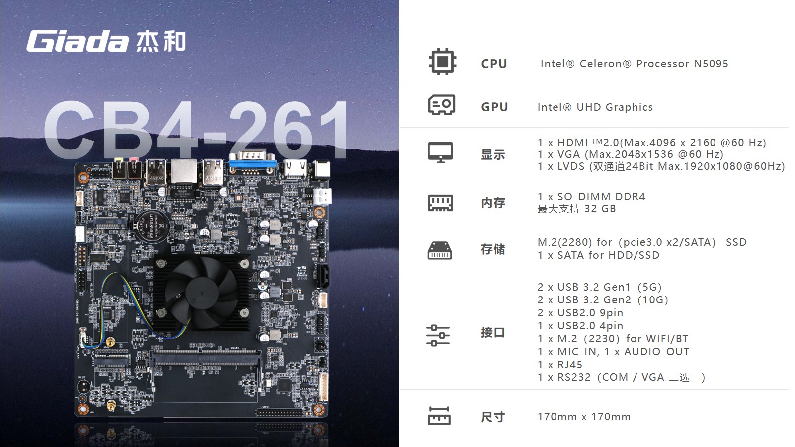 球王会·(体育)科技CB4-261尺寸仅有170x170mm,小而精巧。搭载N5095芯片,该芯片采用10nm制程技术,四核心设计,支持Windows 、Linux系统,可满足多种终端机应用场景的需求,如信息查询、基本数据处理等。