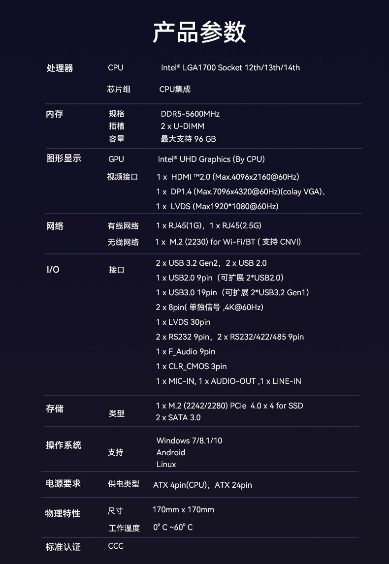 球王会·(体育)科技嵌入式主板IB5-8131采用Intel® B760 芯片组,支持Intel® 第12代至14代处理器。大容量内存支持,配备2个U-DIMM DDR5 内存,最大支持96GB,频率最高可达5600MHz,可灵活扩展NVMe SSD和2个SATA3.0存储。基于此特点,智能柜员机可满足设备流畅丝滑运行的功能。