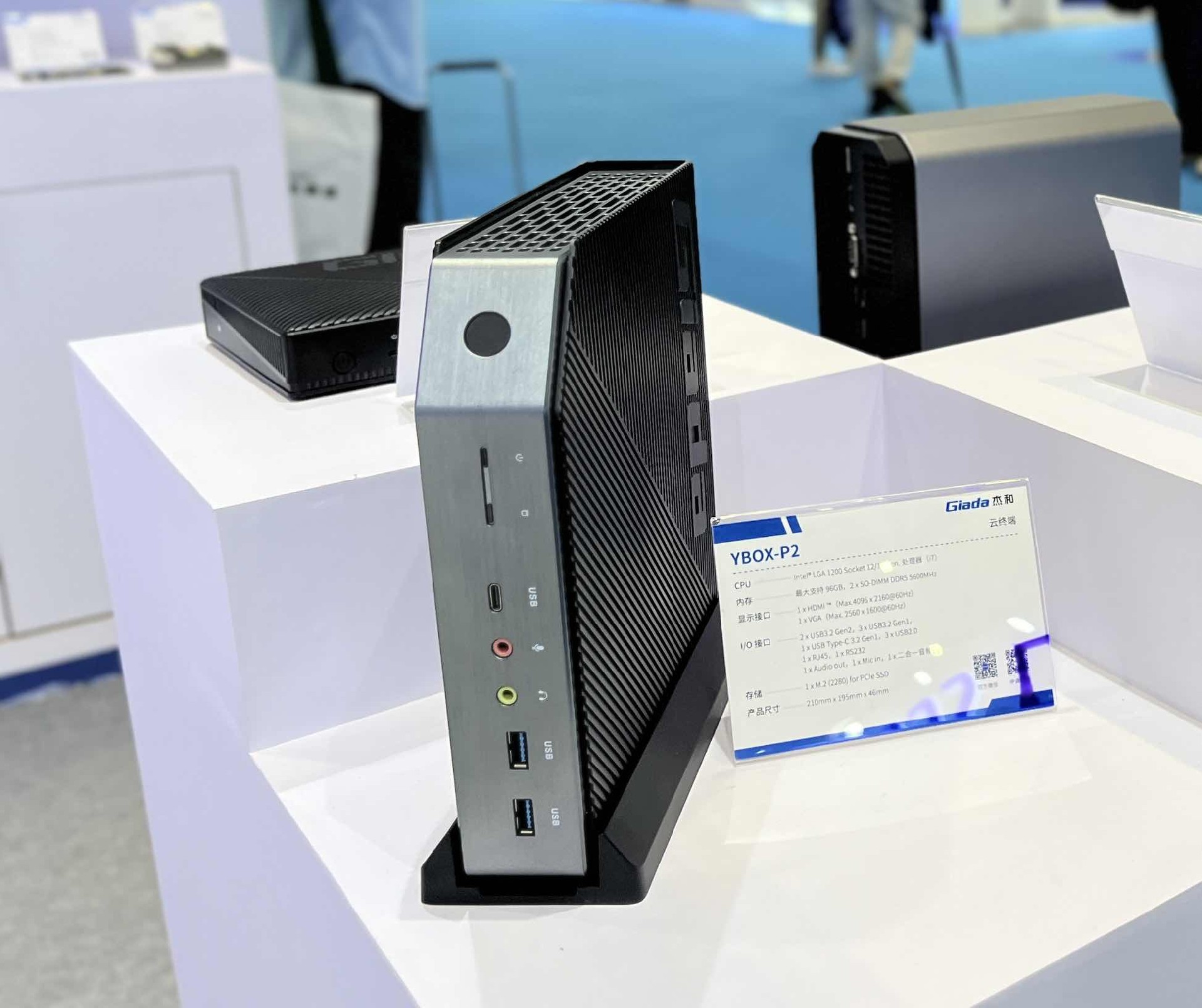 球王会·(体育)科技云终端是云桌面解决方案的重要产品之一,此次球王会针对各客户群体提供不同架构的云终端,带来YBOX-P2、YBOX- S1、Y-BOX- S2和YBOX- SA1四款产品。其小巧的体积吸引了许多观众前来咨询,最新推出的YBOX-P2以其工业感造型以及卓越性能脱颖而出,YBOX-P2支持Intel® LGA 1200插槽,兼容12/13代处理器,在内存配置上同样出色,最大可扩展至96GB,支持2 x SO-DIMM DDR5内存插槽,频率高达5600MHz,确保数据处理速度和多任务处理能力满足高标准需求。