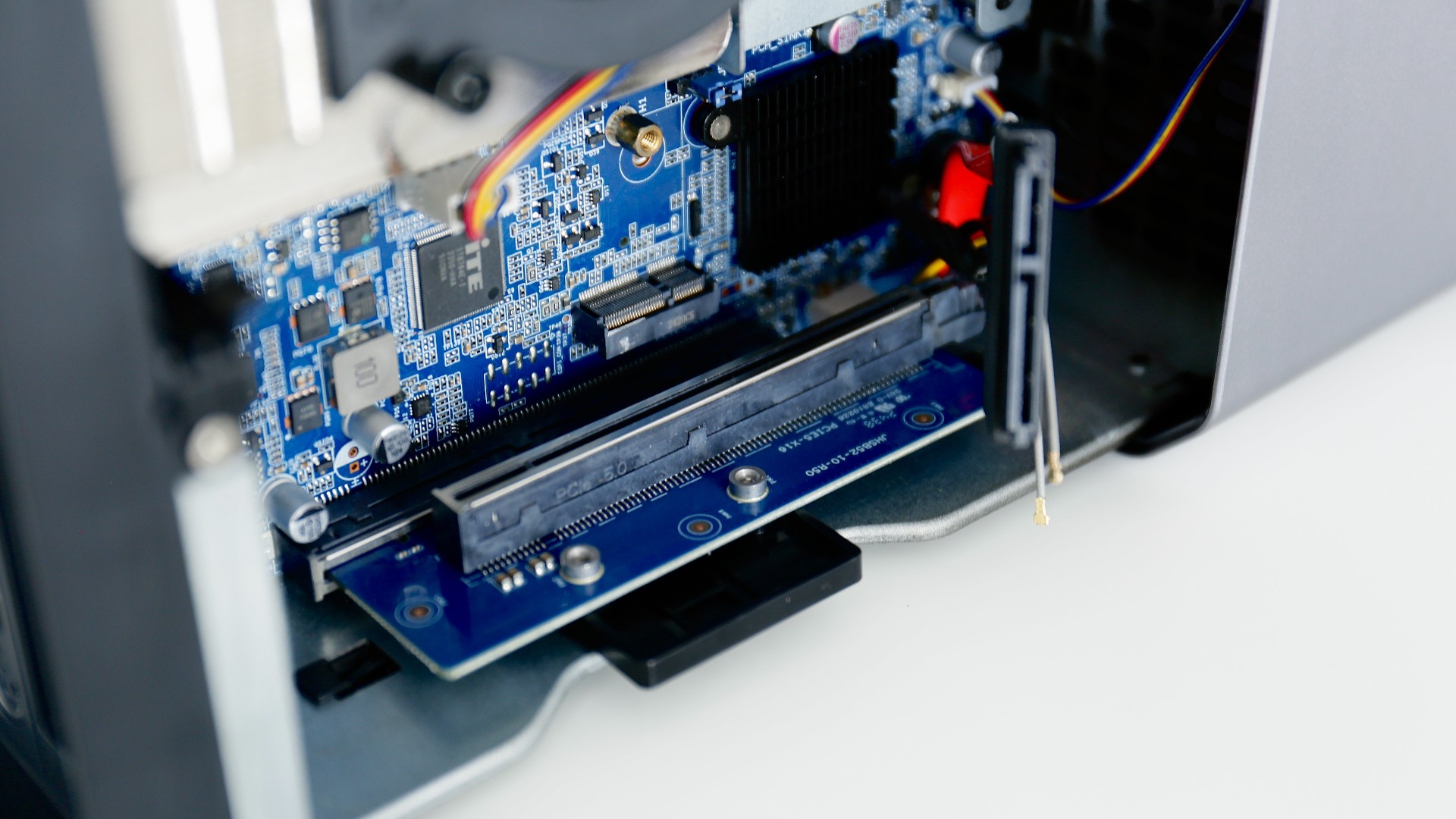 打开WA814内部,球王会可以看到PCle5.0 x16 高速扩展口,它的速度高达64GB/s,可以实现独立显卡、多网口、高速 SSD、多 COM 等设备的扩展。