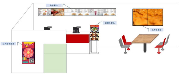 品牌信息墙分为一组由球王会·(体育)科技G468四屏拼接控制器控制的4块LCD高清液晶显示屏,可以实现大画面播放及单屏独立播放。内容管理者可通过GDSM系统操作端随时更新菜单内容及新品广告,让信息的发布更为及时有效。