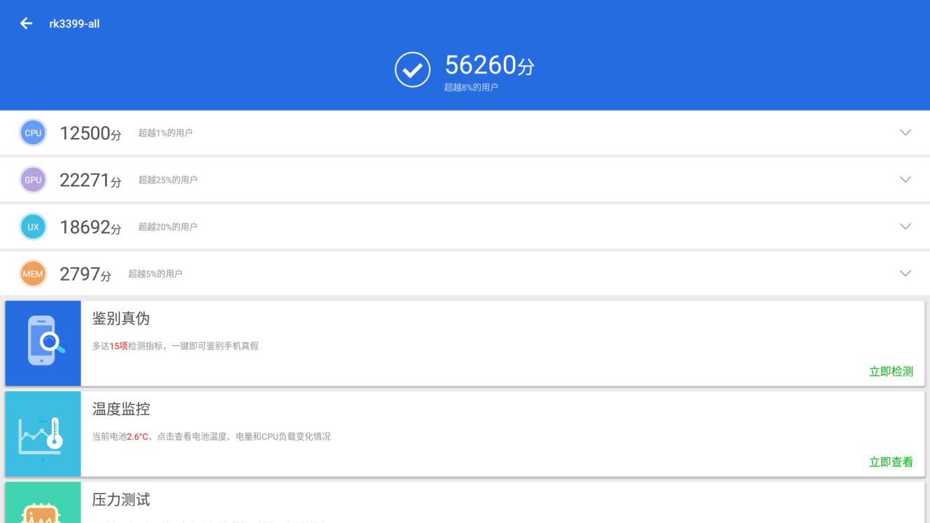 实际视频播放中,球王会·(体育)DN74的表现没有让人失望。使用Android7.1内置播放器,连续播放12小时H.264/H.265编码格式的4K分辨率60帧视频时,没有明显黑屏,延迟,卡顿,音画不同步现象。同时,球王会还对球王会·(体育)DN74的亮点之一,双屏同显/异显进行了测试:在双屏同时播放两个不同的4K分辨率30帧视频时,受限于ARM核心整体性能,画面出现了卡顿,有些遗憾;不过,能够顺利得同时播放4K分辨率30帧视频+1080P分辨率30帧视频得表现已经足够优秀。另一方面,本次测试使用的全部为默认播放器,测试使用的视频来自网络资源下载,编码格式仅能尽量保证一致,相信在适配软件的支持下,球王会·(体育)DN74能够有更加喜人的表现。