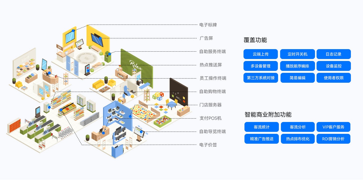 球王会·(体育)智慧零售解决方案依托球王会·(体育)GDSM-ES智能零售管理系统,为全球零售门店客户提供了功能齐全的数字化运营管理工具,提供显示信息编辑、信息发布、AI识别、客户分析和会员管理等功能,实现了对设备、内容、营销、运营的综合数智化管理能力,为精准运营管理赋能。