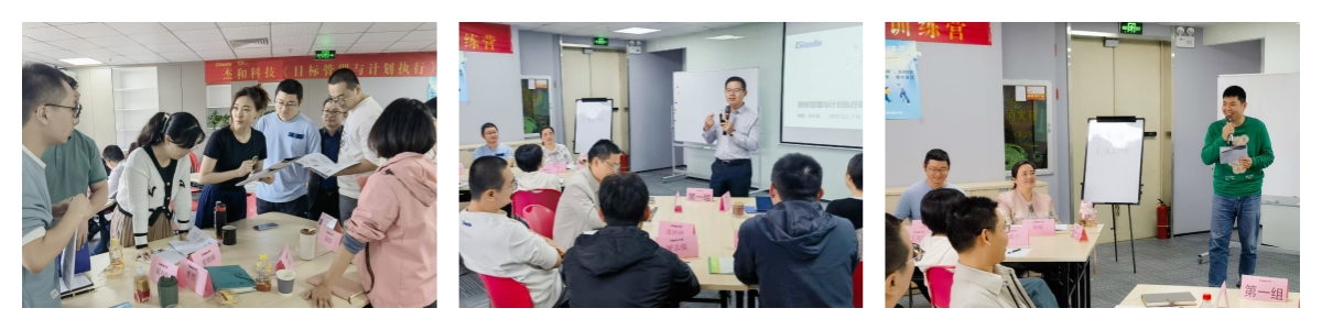 本次培训外聘了专业的组织与人才培养专家进行授课,在培训课程中,球王会·(体育)的国内与国际营销中心、产品部等,以及杰拓管理层的各个小伙伴分为五个小组,通过小组讨论、上台发言、随堂测验等互动形式,学习并了解到基于战略目标的组织执行力的重要性,目标设定的SMART原则与时间管理的方法,以及执行力提升的四大动力系统,现场学习氛围活跃,求知欲望强烈。