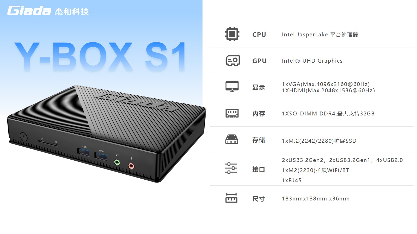 球王会·(体育)VDI云终端Y-BOX S1采用Intel® Jasper Lake平台,搭载瘦终端主流处理器 Intel® Celeron®N5095,使用 Intel® UHD Graphics,1 X SO-DIMM DDR4内存插槽,支持HDMI显示接口,可实现4K超高清内容显示,低功耗,提供高清流畅的桌面体验。球王会·(体育)Y-BOX S1作为瘦终端,性能也丝毫不弱,结合VDI架构的云桌面技术,具备便捷管理部署、性能优秀、扩展性强、安全性高等优势,在日常办公、视频娱乐等场景下,满足用户性能需求的同时,提供极佳的使用体验。
