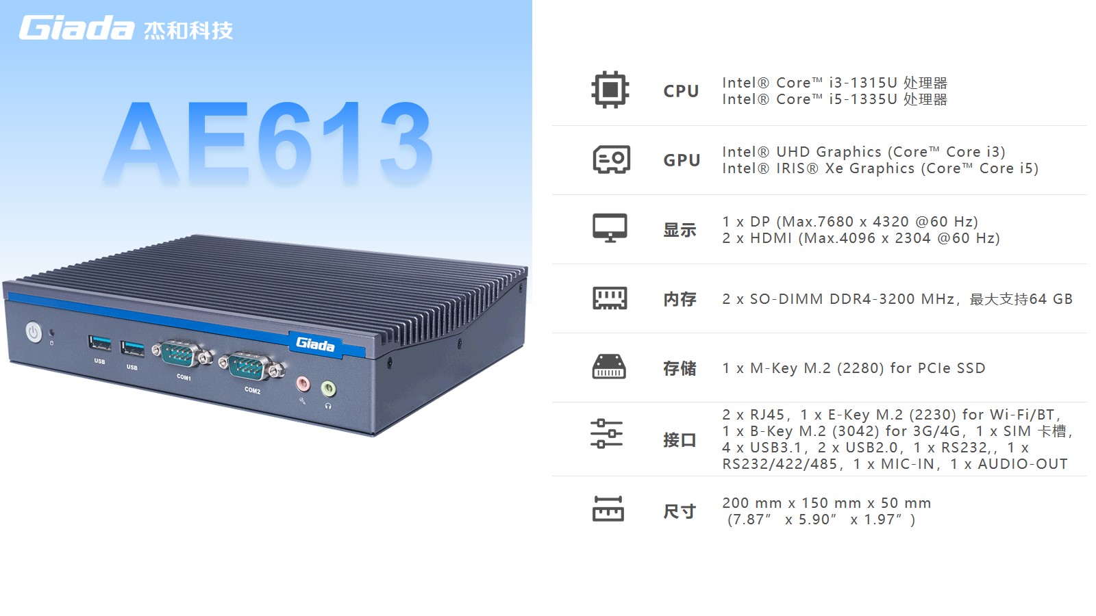 球王会·(体育)AE613拥有2 x SO-DIMM DDR4-3200 MHz内存、1 x M-Key M.2 (2280) for PCIe SSD存储,最大支持64GB,无论是处理复杂的多任务环境、还是运行高负载的软件都游刃有余。