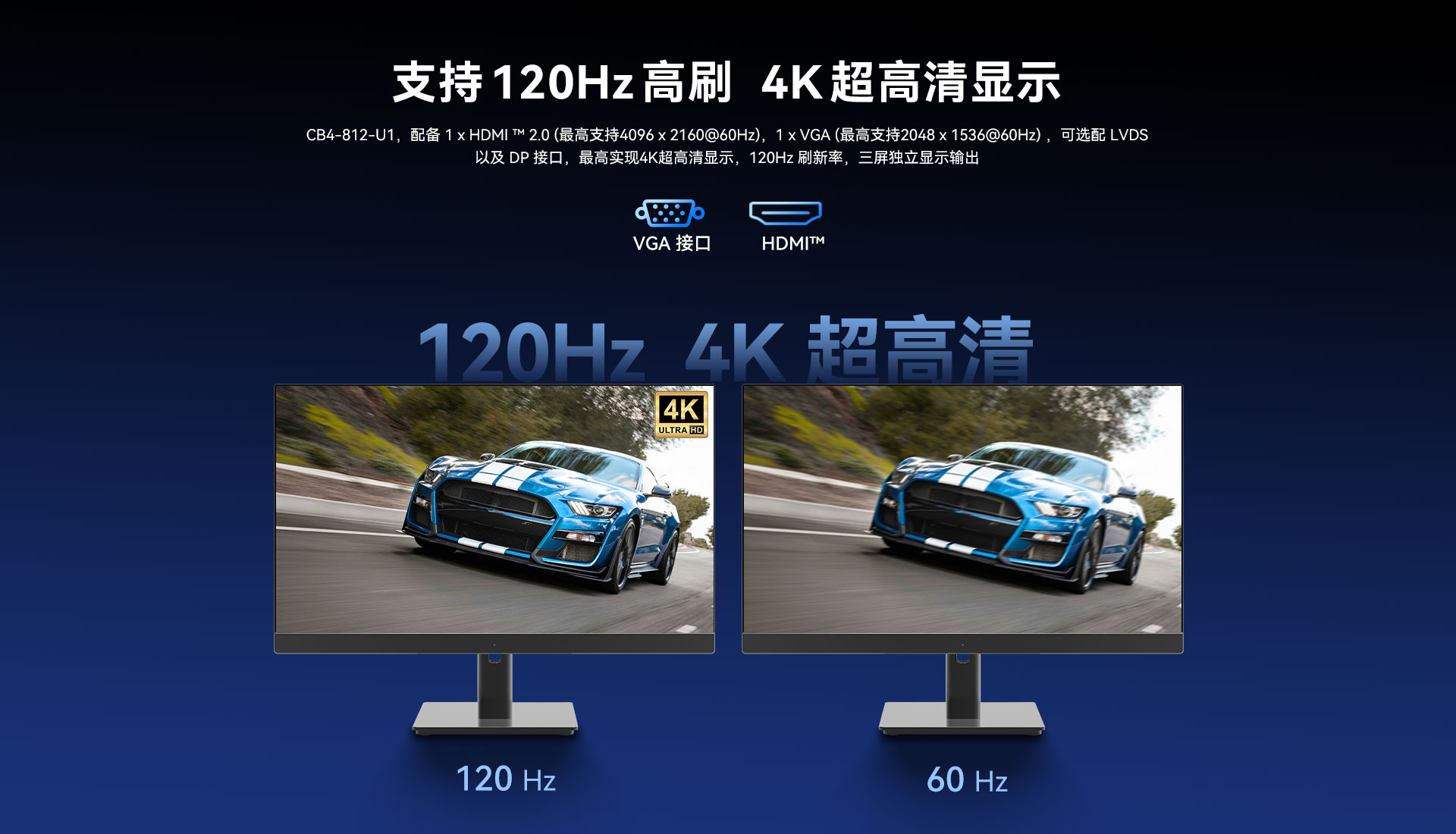 侧面DP可支持4K高清(DP与LVDS接口二选一,接LVDS默认屏蔽DP,DP不支持音频输出与热插拔)