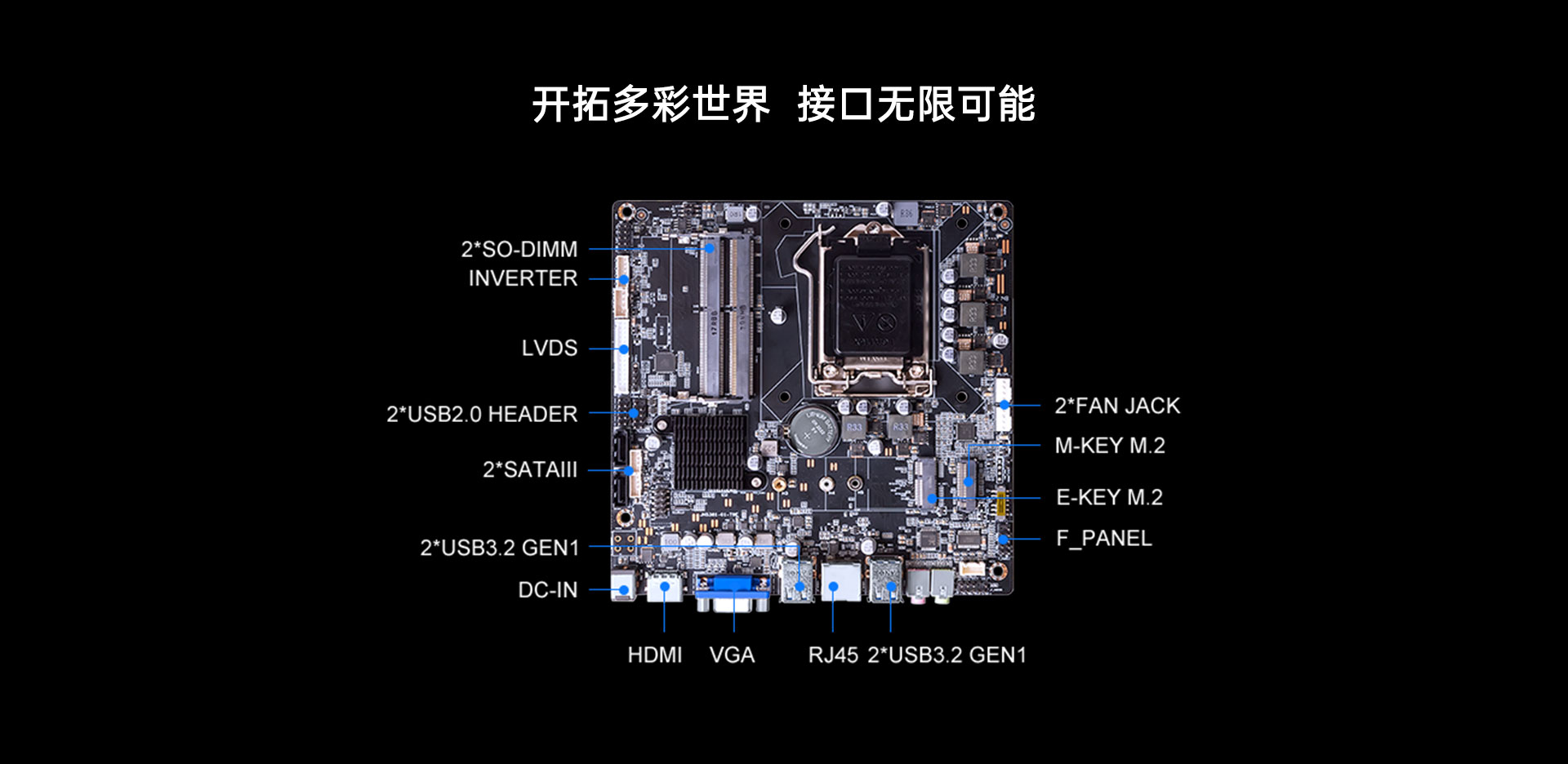 支持1x RJ45,1 x RS232 1 x M.2 (2230) for WIFI/BT